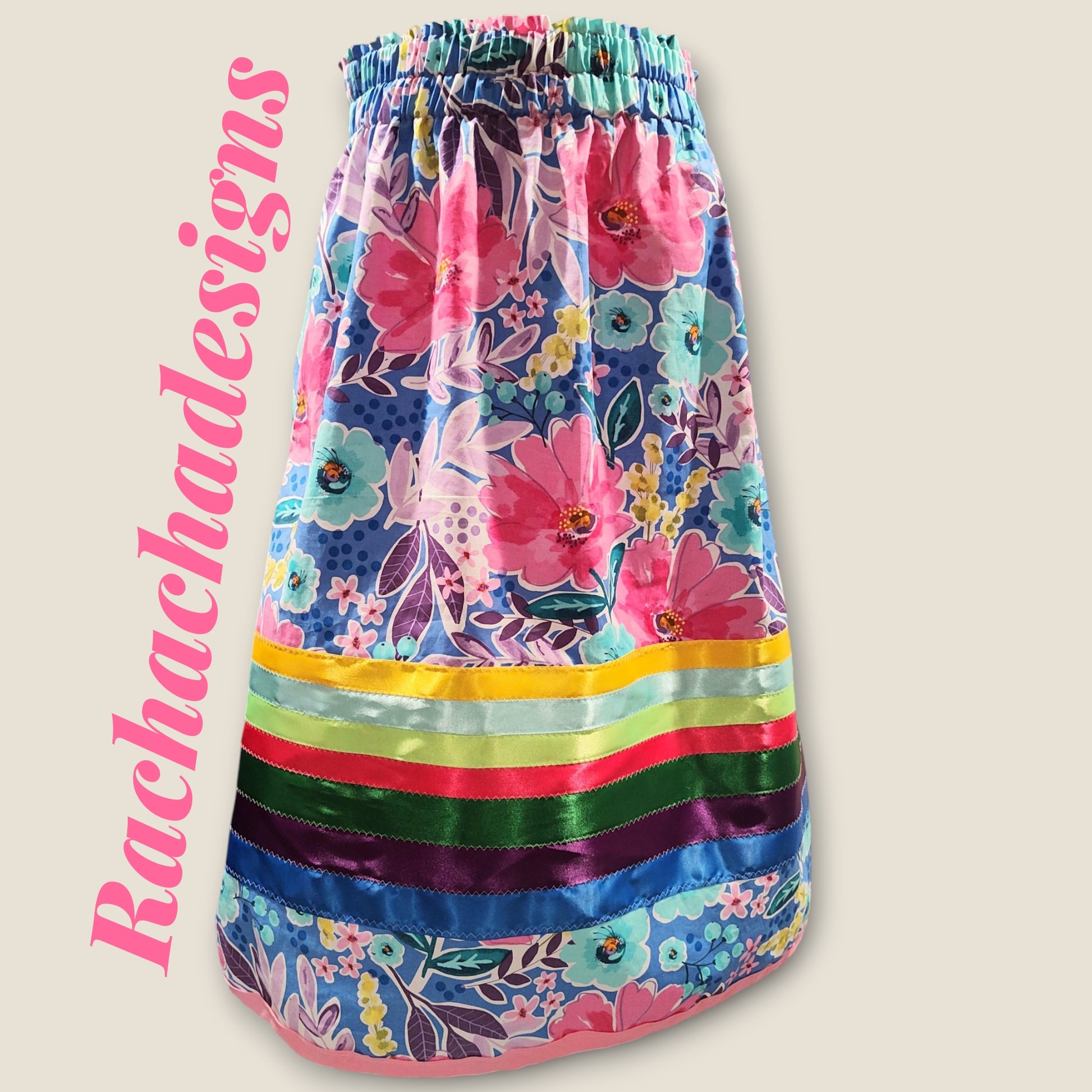 Ribbon Skirt, Floral Ribbon Skirt Multicolored Floral Ribbon Skirt
